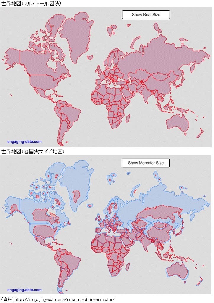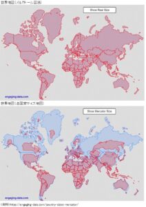 かなりの衝撃画像、日本は他国比 思ったより広い(海洋部分含む)