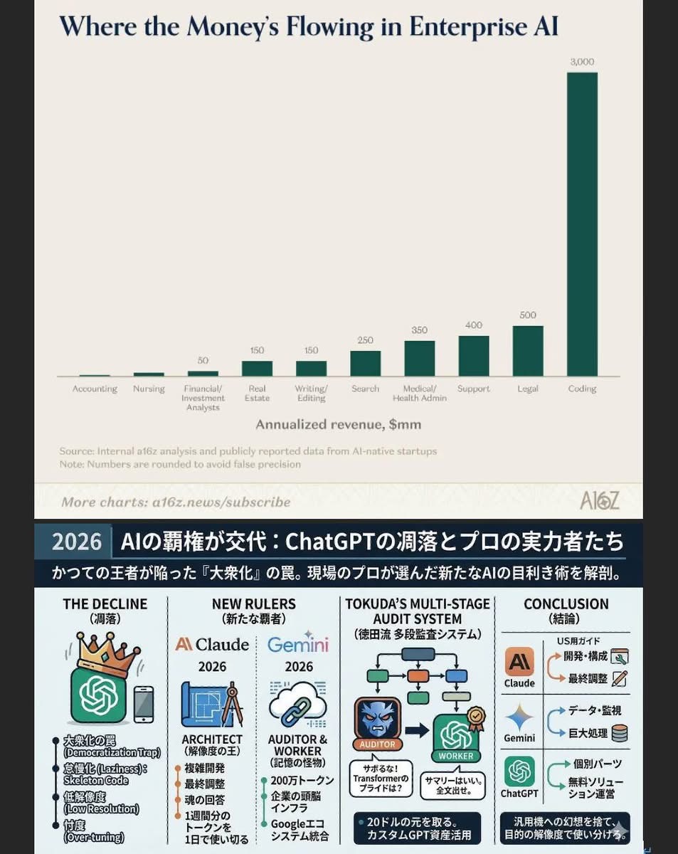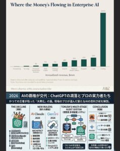 「AI=ChatGPT」の時代は終わりました。 2026年の今、私たちは「凋落した王者」をどう資産として飼い慣らし、最新のAIとどう組み合わせるか。目的の解像度に合わせてツールを使い分け、時にはAI同士を戦わせる「AIの目利き」になること。それが、この三國志の時代を生き抜く道です。」
